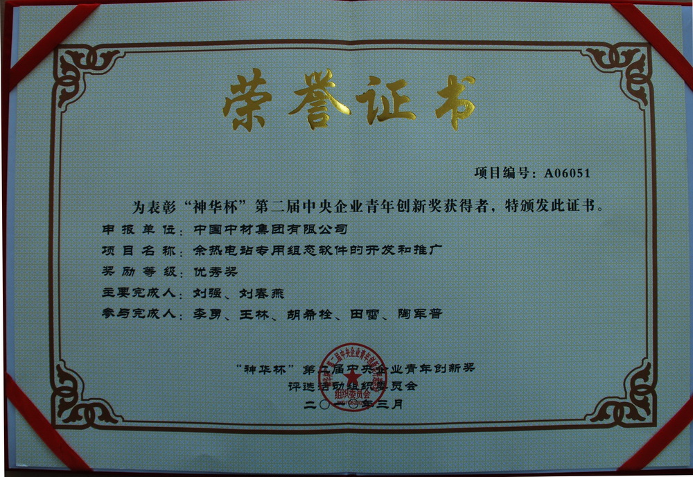 3月30日,“神華杯”第二屆中央企業(yè)青年創(chuàng)新獎表彰大會在國務(wù)院國資委隆重召開。國務(wù)院國資委主任、黨委書記李榮融為獲獎單位頒獎。中材節(jié)能報送的“余熱電站專用組態(tài)軟件的開發(fā)和推廣”項目獲得了優(yōu)秀獎。