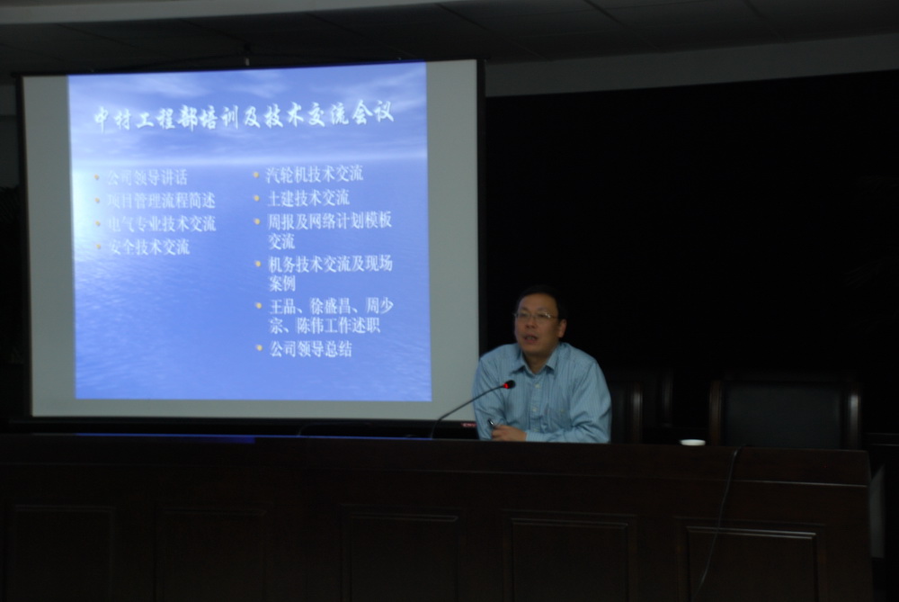 培訓(xùn)和技術(shù)交流的內(nèi)容包括七個(gè)子項(xiàng)專題:項(xiàng)目管理流程、安全管理、電氣安裝、汽輪發(fā)電機(jī)安裝、土建施工管理、機(jī)務(wù)安裝及現(xiàn)場施工案例、周報(bào)及網(wǎng)絡(luò)計(jì)劃模板。本次培訓(xùn)以學(xué)習(xí)、交流、互動為主,與會人員聽講認(rèn)真,交流積極熱烈。