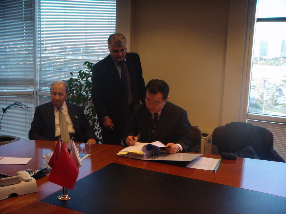 中材節(jié)能市場部部長王毅、項目經(jīng)理曲鐵政、劉強(qiáng)及洪會林與Nuh Cimento Sanayi A.S.水泥公司董事長Mr. ATALAY SAHINOGLU、執(zhí)行董事Mr. OZER YURTBILIR及項目組成員共同出席了合同簽約儀式。