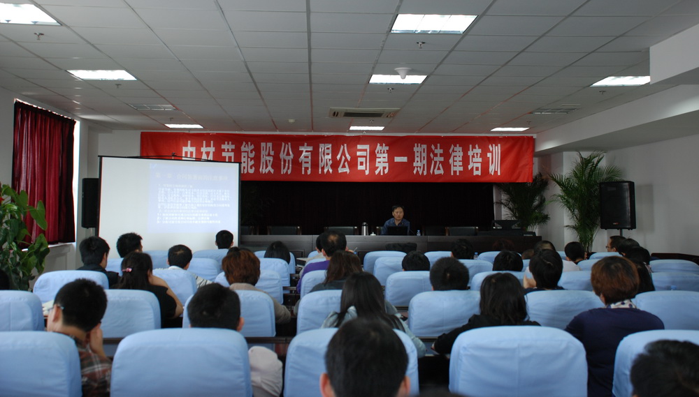 為加強(qiáng)公司管理水平,提高員工風(fēng)險(xiǎn)防范意識,中材節(jié)能于2011年5月13日上午組織了第一期法律培訓(xùn)。公司特邀常年法律顧問花新樂律師作專題講座,公司高管、中層干部及員工共100余人參加培訓(xùn)。