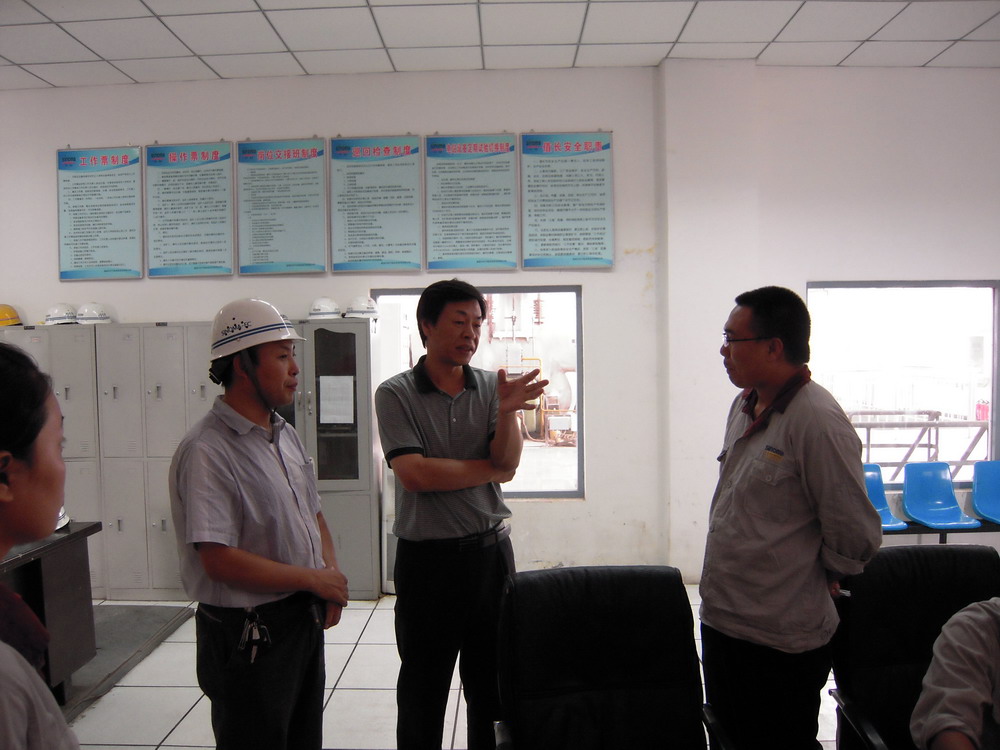 2011年7月21日,張奇董事長(zhǎng)冒著炎炎酷暑,在投資部部長(zhǎng)楊巍、副部長(zhǎng)季敏海的陪同下,來(lái)到鹿泉中材節(jié)能余熱發(fā)電有限公司慰問(wèn)電站員工并視察指導(dǎo)工作。