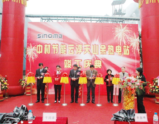2008年12月28日,在歲末新春交替、孕育著新希望的時刻,中材節(jié)能云浮天山余熱電站竣工并網(wǎng)典禮在中材天山(云?。┧嘤邢薰九e行。
