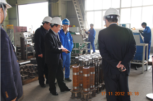 劉志江首先考察了武漢院裝備制造基地——中材節(jié)能(武漢)有限公司。在生產(chǎn)車間,劉志江詳細(xì)了解了機(jī)加工設(shè)備的配備以及外購件、外購設(shè)備的選用情況。在新落成的基地綜合樓,劉志江對員工辦公、生活條件的改善表示滿意。