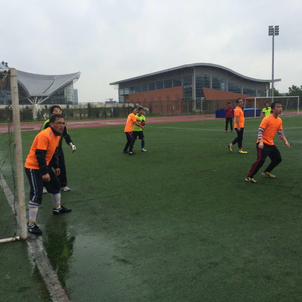 由于比賽在周末進(jìn)行,隊(duì)員除了安排好工作外還要兼顧家里的事情,因此,隊(duì)員好多時(shí)候要保持良好的體力并不容易。一些隊(duì)員,如勇哥(我們的隊(duì)長(zhǎng)李勇)、庚叔(大家對(duì)營銷中心劉庚的親切稱呼)、李杰、阿太(任太琳)等都是出差回來接著就參加比賽或者比賽完就又出差。正是因?yàn)榇蠹覕Q成一股繩的團(tuán)隊(duì)精神,才讓我們?cè)谫悎?chǎng)上更加充滿力量,一場(chǎng)比一場(chǎng)踢得好。記得第一場(chǎng)比賽對(duì)陣中材礦山,由于對(duì)手實(shí)力相對(duì)較弱,大家一上來也許是磨合熟悉不到位等原因,開場(chǎng)幾分鐘就丟掉一球。但是這時(shí)候大家沒有相互埋怨,而是前后場(chǎng)隊(duì)員相互協(xié)作更積極的協(xié)助防守,同時(shí)加強(qiáng)進(jìn)攻,大家相互喊著鼓勵(lì)著,最終比分定格在8:3,隊(duì)中頭號(hào)射手李杰更是個(gè)人打進(jìn)6球,贏得開門紅。