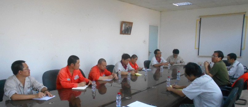 胡也明抵達(dá)沙特后,第一時間趕到沙特YCC項(xiàng)目部,在余熱發(fā)電事業(yè)部副總經(jīng)理王品的陪同下了解現(xiàn)場施工進(jìn)度、安全管理和員工的生活狀況。在對施工現(xiàn)場安全檢查過程中,胡也明向工人們詢問了空冷島的安裝過程,并對安全防護(hù)措施做了詳細(xì)檢查。在項(xiàng)目部專題會上,胡也明指出,現(xiàn)場要把安全放在第一位,要加大現(xiàn)場的安全監(jiān)管力度,杜絕工人的違章違規(guī)行為,對發(fā)現(xiàn)的安全隱患要立即整改。期間,胡也明還參加了由YCC業(yè)主和分包方共同參加的項(xiàng)目協(xié)調(diào)會并講話。